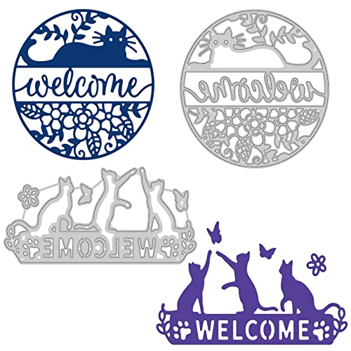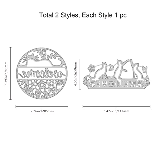 Tema del gatto: 2 pezzo di fustelle di gatto, farfalle e motivi floreali, adatto per la creazione di biglietti e perfetto per qualsiasi decorazione su carta. Su 5~8.6x8.6~11.1 cm.