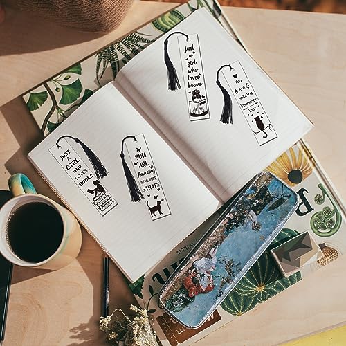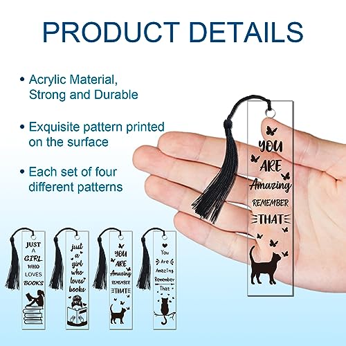 GLOBLELAND 4 Set Segnalibri Pressati In Acrilico per Donne e Gatti Segnalibri In Acrilico Trasparente Tag Segnalibri Rettangolari con 4 nappe per Lettori Regalo di Compleanno, 4.7"X1.1"/120x28mm