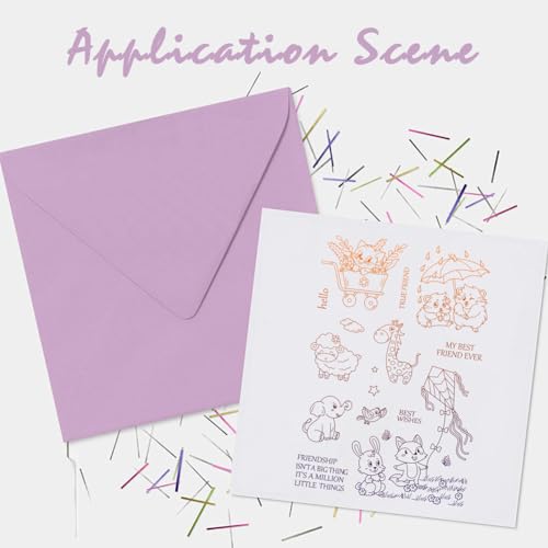 Timbri in silicone dell'amicizia: 1 foglio di timbri trasparenti con gatto, pecora, coniglio, modelli di elefanti e volpi, adatto per la creazione di biglietti e la decorazione di album di ritagli. Ogni foglio misura circa 16x11 cm,6.3x4.3 pollici.