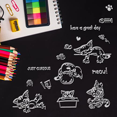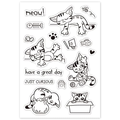 GLOBLELAND Timbro Gatto Timbri Trasparenti Sigillo Gatto Timbri Journaling in Silicone Trasparente per la Creazione di Biglietti e Decorazioni per Scrapbooking