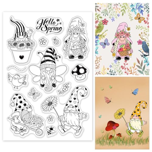 GLOBLELAND Timbro Gnomo Timbri Trasparenti Sigillo a Tema Primaverile Timbri Journaling in Silicone Trasparente per la Creazione di Biglietti e Decorazioni per Scrapbooking