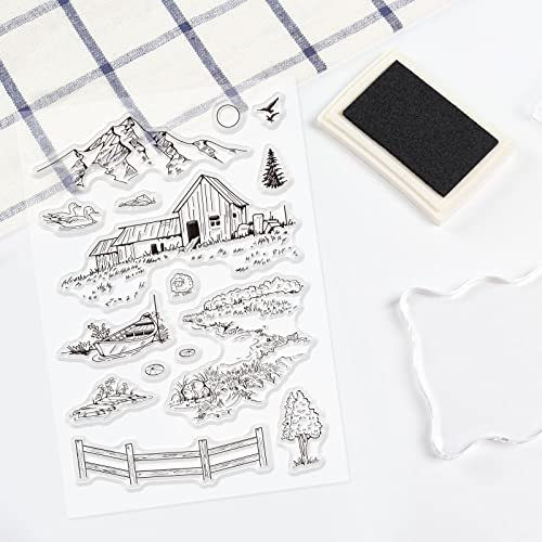 GLOBLELAND Timbro Silicone Paesaggio Timbri Trasparenti Sigillo Paesaggio Rurale Timbri Journaling in Silicone Trasparente per la Creazione di Biglietti e Decorazioni per Scrapbooking
