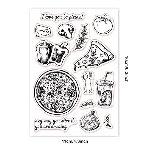 GLOBLELAND Timbro Silicone Cibo Timbri Trasparenti Pizza, Pomodoro, Funghi, Formaggio e Peperoni Timbri Journaling in Silicone Trasparente per la Decorazioni per Scrapbooking
