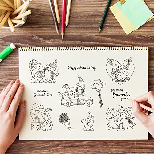 Timbri in silicone per gnomi di San Valentine: 1 foglio di timbri trasparenti con motivi di gnomi felici, adatto per la creazione di biglietti e la decorazione di album di ritagli. Ogni foglio misura circa 16x11 cm,6.3x4.3 pollici.