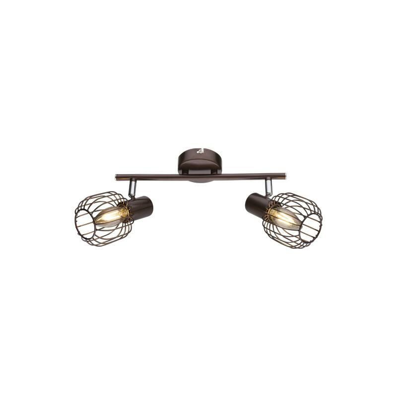 Faretto a due luci GLOBO ANAKIN, lampadine NON incluse, color bronzo, cromo, marrone, GLB 54801-2. Faretto a due luci GLOBO ANAKIN, lampadine NON incluse, color bronzo, cromo, marrone. L'insolita combinazione di metallo color ruggine, marrone e cromato in un design a gabbia è ciò che rende questo tradizionale faretto da parete o soffitto così speciale. I due spot a gabbia mobili, montati su un braccio dritto, sono dotati ciascuno di una presa E14, che permette di scegliere la lampadina (max 40W) e quindi l'intensità e il colore della luce. Grazie al loro risparmio energetico e alla loro lunga durata, raccomandiamo le lampadine a LED, acquistabili nell'apposita sezione di questo sito. Caratteristiche: Lampadine NON incluse: 2xE14 max 40W. Dimensioni: 150x325x90 mm (HxLxl). Materiale: metallo. Colore: bronzo, cromato, marrone. Diametro paralume: 90 mm. Diametro della base: 85 mm. Dimmerabile: dipende dalla lampadina. Tensione: 230V. Grado di protezione: IP20. Classe di protezione: 1.