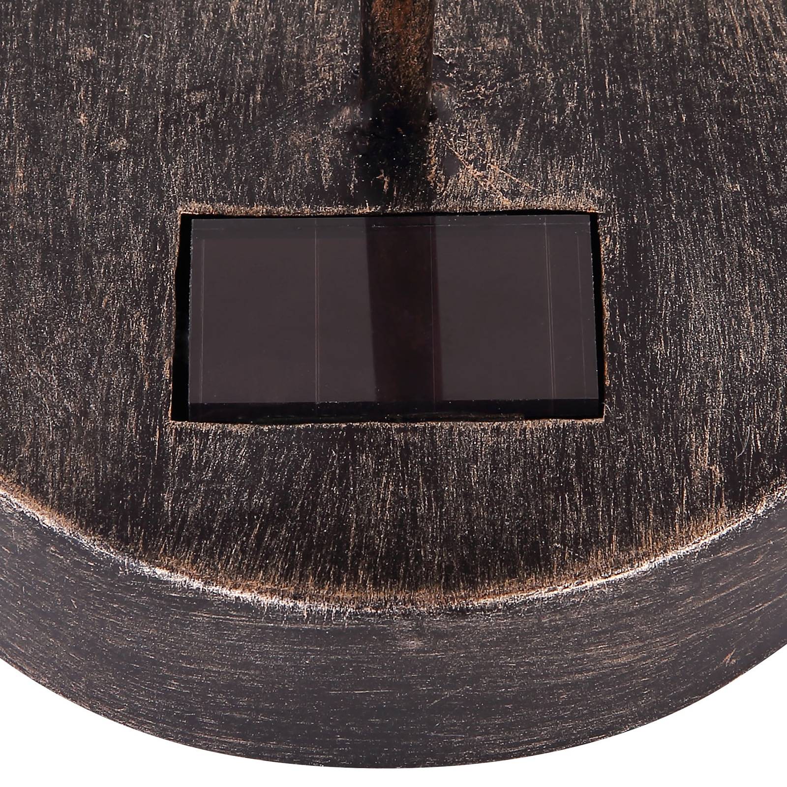 Luce solare a LED a forma di foglia con sfera di vetro in look crackle Grazie alle sue piccole dimensioni, la luce solare a LED può essere collocata in molti luoghi all'aperto. Sulla terrazza, sul balcone o direttamente in giardino - grazie alla sua bella forma e alla discreta colorazione, la luce LED si adatta bene ovunque. La sfera di vetro interna è illuminata da una luce LED e fornisce fino a otto ore di luce. Il pannello solare si trova direttamente nella base della lampada. L'effetto 3D integrato crea un'atmosfera particolarmente accogliente. Grazie ad essa, sembra che la luce sfarfalli come una candela o un piccolo fuoco. La lampada solare può essere comodamente accesa e spenta con un interruttore.