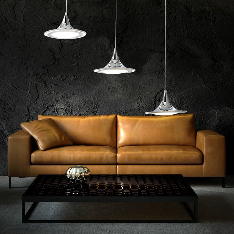 Descrizione Design perfettamente coordinato. Questa lampada a sospensione non serve solo come fonte di luce, ma quest'opera d'arte dona nuovo splendore alla tua casa. Indipendentemente dal fatto che si tratti di ingresso, soggiorno, sala da pranzo o camera da letto. La composizione dei materiali di alta qualità e i colori creati con essi è una gioia per gli occhi, di cui non ne hanno più mai abbastanza. I faretti a LED consumano solo una quantità minima di elettricità e hanno un consumo persino inferiore rispetto alle lampade a risparmio energetico. Questo protegge l'ambiente e il tuo portafoglio. Sono incluse tre lampade LED di alta qualità a risparmio energetico. Dettagli lampada • tipo di lampada: lampada a sospensione • materiale: cromo • paralume: acrilico satinato trasparente • forma: barra con 3 appendini rotondi • Dimensioni altezza x larghezza x lunghezza in cm: 100x23x79 • Peso: 2,62kg • Prese: 3x LED • lampadine incluse: si • lampadine: 3x 7 watt • colore luce: bianco