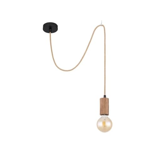 Globo Lampadario a sospensione in metallo nero opaco legno marrone scuro corda di canapa marrone con gancio per l'accorciamento dei cavi 69069-1H