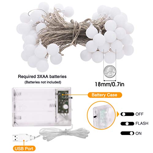 Globo String Lights, alimentazione a batteria/presa USB, 4,9 m, 40 LED, luci a sfera, decorative per illuminazione interna, camera da letto, patio, giardino, festa di matrimonio, Natale, bianco caldo