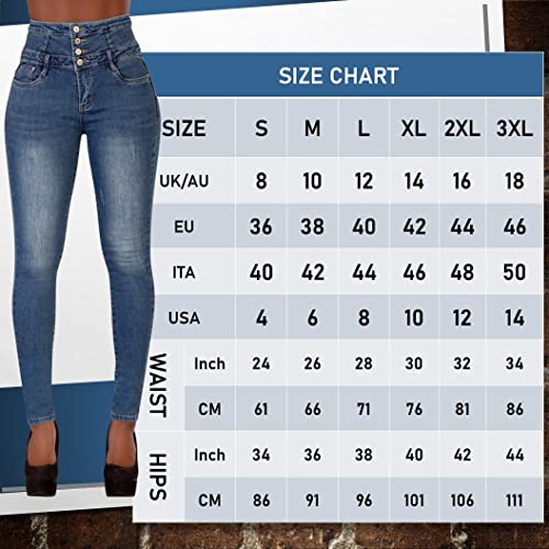 Glook Jeans Donna Vita Alta, Jeans Donna Elasticizzati Vita Alta in Comodo Tessuto di Cotone, Jeans Skinny Donna Vita Alta Gamba Sottile (44, Denim Blu Sbiadito)