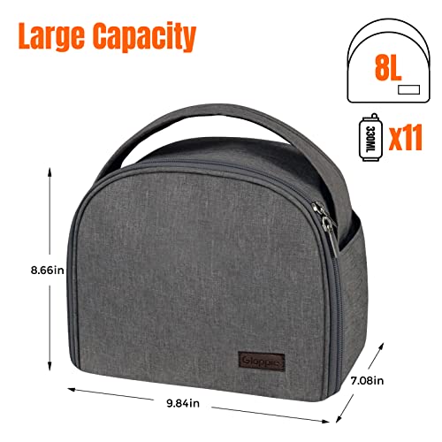 Gloppie Borsa Termico per Isolamento Impermeabile, Borsa per Il Pranzo Facile da Pulire Riutilizzabile, Borsa frigo Manutenzione di Freddo e Caldo a Forma di U, 8L Grigio