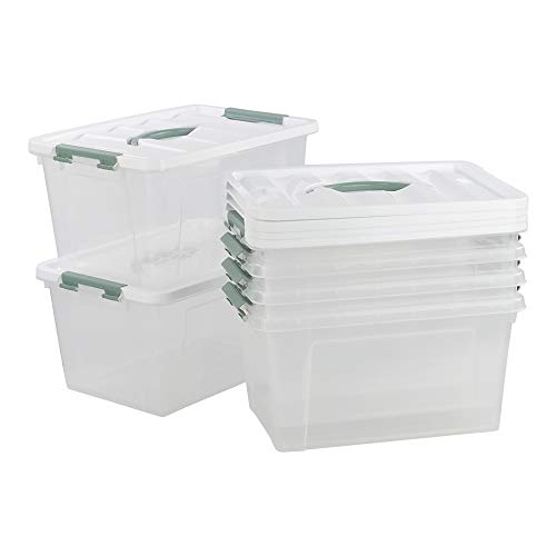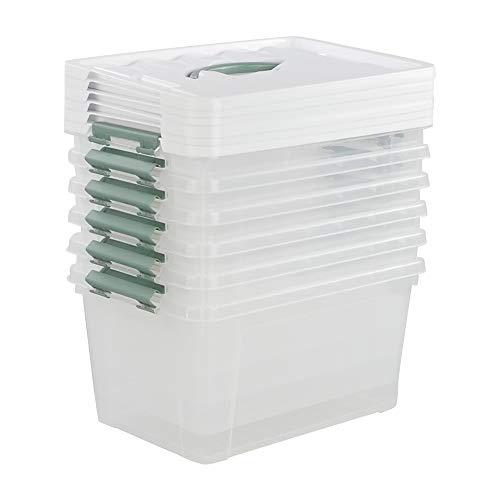 Gloreen Scatola Portaoggetti Trasparente con Coperchio, 12 L, Multiuso Scatola di Plastica con Manico, Confezione da 4