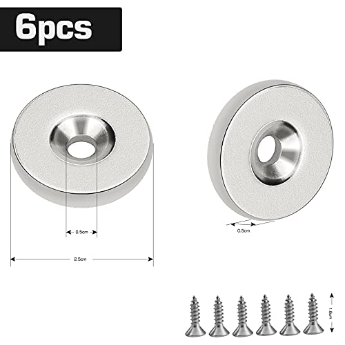 GLORHA 6 Pezzi Magneti a Foro Svasato 25 x 5 mm Magneti al Neodimio a Disco Trazione 10 kg con 6 Viti per Corda Fotografica Garage Ufficio La Cucina Lavagna Magnetica