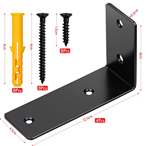 Specifiche: 4 staffe angolari: 125 x 80 x 45 mm, 8 tubi di espansione giallo: 40 mm, 8 viti lunghe nere M4 40 mm, 8 viti corte nere: M4 16 mm.