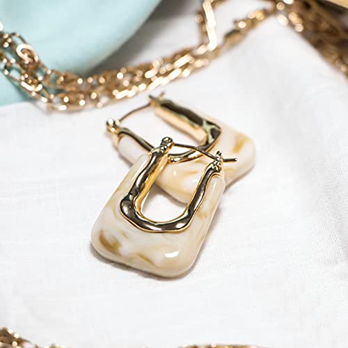 GLORIS Orecchini a cerchio quadrati dorati con inserti in resina, da donna, orecchini a cerchio, orecchini a cerchio con chiusura dorata, orecchini con resina, Resina