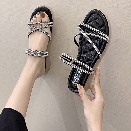 King Glory Sandali Donna Estive Slingback Sandalo Sandali Donna Bassi Sandali con Zeppa Comodi Eleganti Sandali Punta Aperta Nero EU39