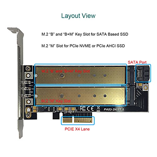 GLOTRENDS M.2 PCIe NVMe or PCIe AHCI SSD to PCIe 3.0 x4 and M.2 SATA SSD to SATA III Adapter Card (Support 22110/2280/2260/2242/2230)