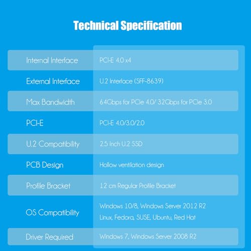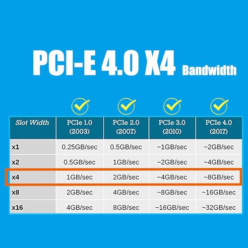Ampia compatibilità con il sistema operativo, nessun driver richiesto per Windows 11/10/8, Windows Server 2012 R2, Linux, Fedora, SUSE, Ubuntu e Red Hat. Supporta l'avvio del sistema operativo da M.2 PCIe SSD.