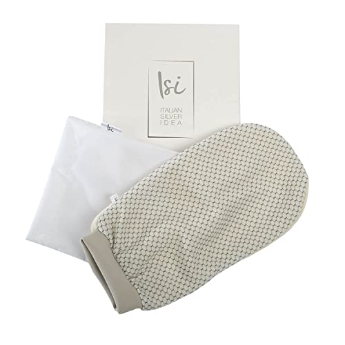 ISI - The Body Glove Guanto Esfoliante Corpo in Argento e Cotone Biologico - Spugna Doccia per Peeling e Scrub Corpo per una Pelle Liscia e Luminosa