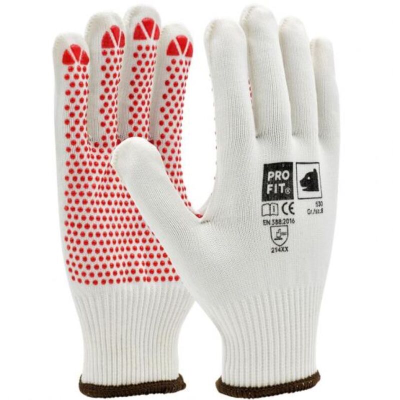Colleutica a maglia fine di cotone-poliamide con vinil-NOPS rosso unilaterale Weiß Strickbund tondo a maglia rotonda piastre a doppio strato: all'interno della pelle di cotone -friendly e piacevole da indossare Poliammide esterna - robusto e stabile molto resistente Valori molto buoni e di abrasione - Per una durata di lunga durata buona vestibilità