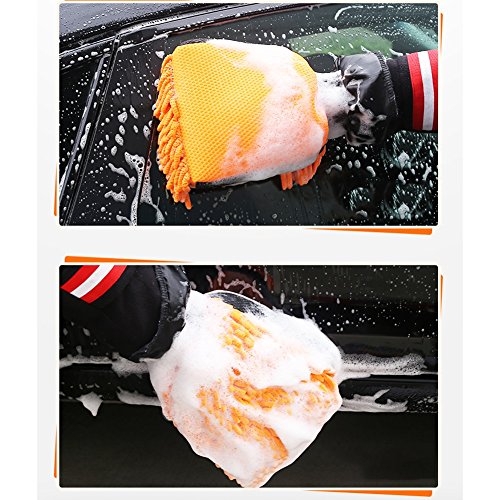 1, guanti di lavaggio auto a doppia faccia ciniglia, tecnologia in microfibra, morbido non fa male la vernice auto, antistatico, durevole, con alto assorbimento d'acqua, forte detergenza, morbidezza, non depilazione, facile da pulire, è molto popolare oggi Auto popolare apparecchi per la cura