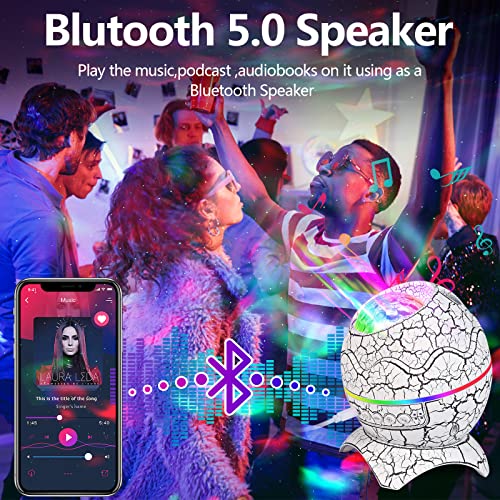 【Luce notturna con proiettore di uova di dinosauro】- Dispositivo 4 in 1: proiettore di uova di dinosauro, lampada notturna, macchina per il rumore bianco e lettore musicale, che crea una straordinaria esperienza audio e visiva.14 effetti di illuminazione a colori, godetevi la bellezza dello spazio con il proiettore Galaxy Star.