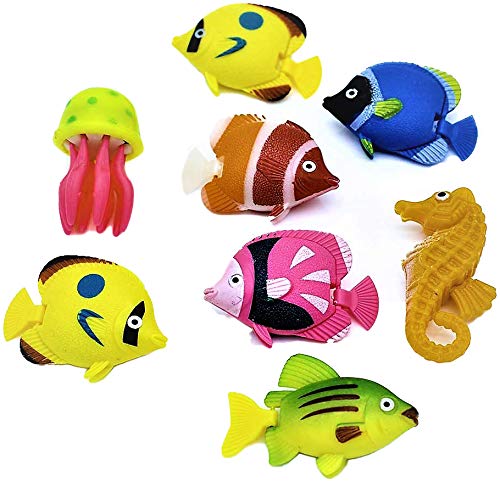 Fornito ora con 8 premium multicolore plastica fish! 6 pesce, 1 meduse e 1 seahorse. (che nuotare / galleggiante su e giù!)