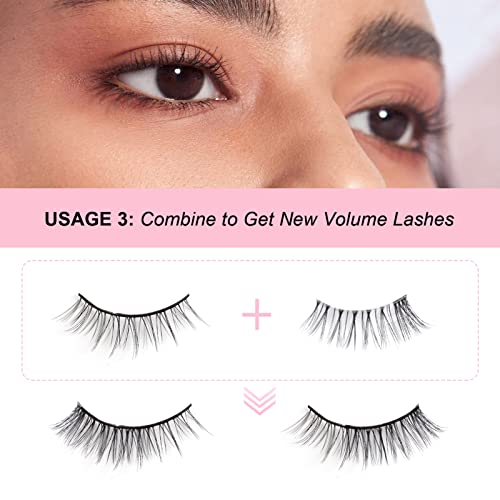 Ciglia finte naturali fake lashes wispy: le mezze ciglia con fascia trasparente sono ciglia super naturali per occhi di gatto che sono brave ad allargare gli occhi per renderti più attraente senza appesantire gli occhi. Mentre l'interno è le tue vere ciglia, che sembrano più naturali e reali, adatte per l'uso quotidiano.