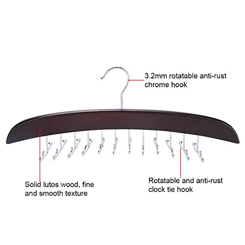 Glowow, appendiabiti in legno, con 24 ganci rotanti per cintura e cravatte, organizer per cintura, sciarpe, accessori per la casa e l'armadio (rosso scuro)