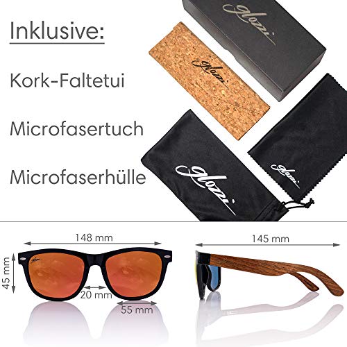 Glozzi Occhiali da Sole Legno di Noce per Uomo e Donna con Lenti Polarizzate UV400 Aste in Legno e Custodia in Sughero