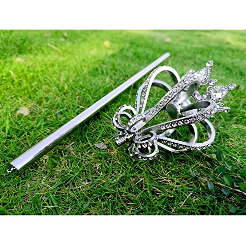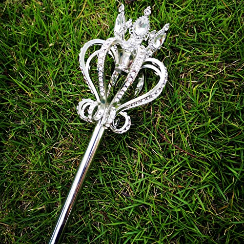 GlSAKE Regina Re Scettro Strass Fata Principessa Bacchetta Giochi di Ruolo Puntelli Accessori per Costumi da Sposa per Feste (19,7 Pollici, 7 Once) (Argento)