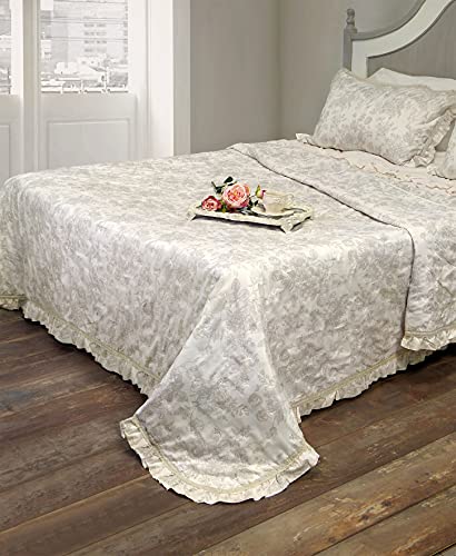 GLShabby Copriletto Coperta Matrimoniale Shabby Chic con Due Copriguanciali Toile De Jouy Colore Avorio Tortora 260x260