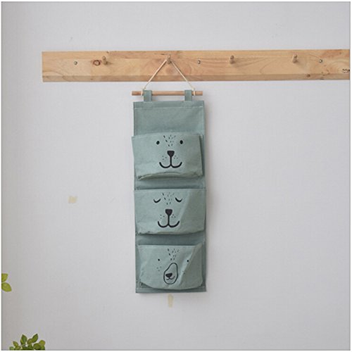 Gluckliy - Borsa portaoggetti da appendere alla porta, in cotone e lino, con 3 tasche, colore: Verde