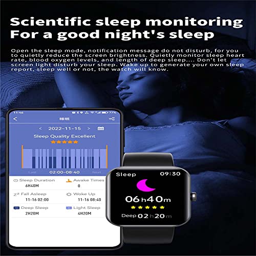 Glucose Monitoring Watch-Open the sleep mode, notification message do not disturb, for you to quietly reduce the screen brightness. Quietly monitor sleep heart rate, blood oxygen levels, and length of deep sleep.... Don't let screen light disturb your sleep. Wake up to generate your own sleep report, sleep well or not, the watch will know.