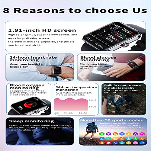 All Day Monitoring of Heart Rate and Blood Pressure- Bluetooth Fashion Smartwatch,Diabetic WatchesSupports up to 50+ professional exercise modes based on accurate real-time heart rate detection and AI algo-rithms. The watch will record all the data in the process of movement in real time to ensure that the movement is more efficient and safer.