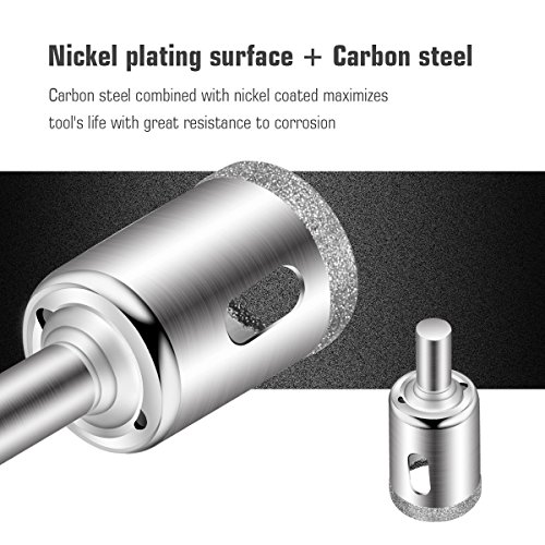 【INSEGNAMENTO, CUTS QUICKLY】 Realizzato in acciaio al carbonio ad alta resistenza con superficie liscia in nichelatura, bit per fori in vetro ridotto al minimo, rende facile perforare fori precisi in secondi.