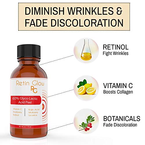 60% Glyco-Lactic Acid Peel with 120ml Bottle After Peel Neutralizer. Peel Contains Retinol, Vit C + Skin Lightening Kojic Acid, Licorice, Bearberry & Mulberry