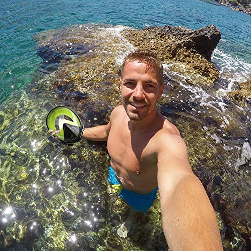 Glymnis Maschera Snorkeling Maschera Subacquea Immersione Panoramica Integrale a 180° Anti-Appannamento, Anti-Infiltrazioni con Tubo Respiratorio Pieghevole per Uomo e Donna Nero-Verde L/XL