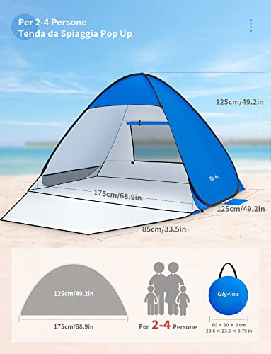 Glymnis Tenda da Spiaggia Completamente Chiuso Tenda Spiaggia Pop-up con Cerniera Tenda Istantanea Portatile 175 * 200 * 125 cm per 2-4 Persone, Protezione Solare UPF 50+, Include Borsa Portatile