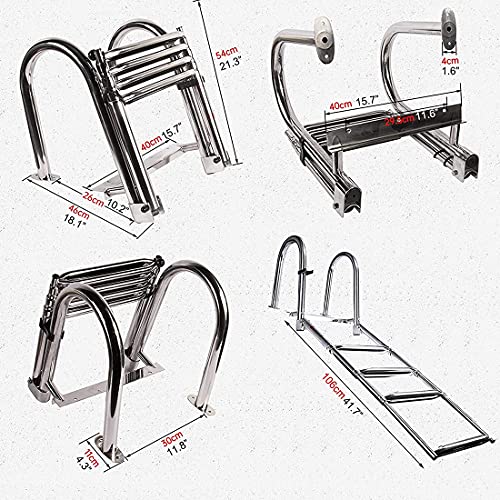 [Resistente acciaio inossidabile]: la scaletta pieghevole a 4 gradini è realizzata in acciaio inossidabile di alta qualità. La scaletta del pontile del pontile è robusta e resistente alla corrosione per lunghi tempi di funzionamento. (Può contenere 440 libbre.)