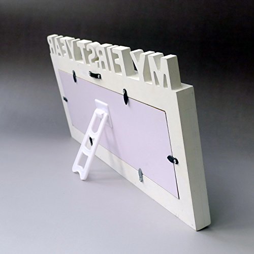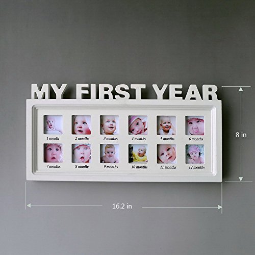Gmisst Cornice portafoto in legno con scirtta in lingua inglese “My first year” da appendere, 12 foto