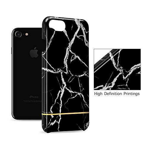GMYLE Custodia iPhone 7, [Marmo con Oro] Custodia Rigida Lucida per Apple iPhone 7 - [Marmo Nero con Cinta Oro] Custodia Posteriore Rigida Ultra Sottile