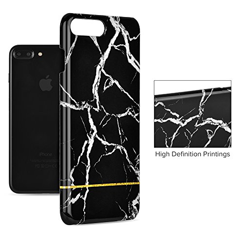 GMYLE Custodia iPhone 7 Plus, [Marmo con Oro] Custodia Rigida Lucida per Apple iPhone 7 Plus - [Marmo Nero con Cinta Oro] Custodia Posteriore Rigida Ultra Sottile