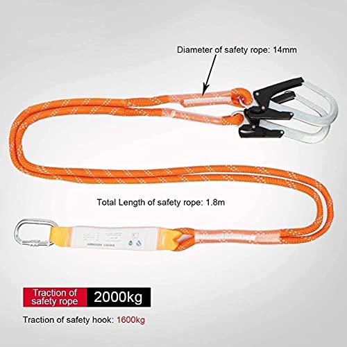 【CORDA DI SICUREZZA】: dotata di una corda di sicurezza con un diametro di 14 mm e una lunghezza totale di 1800 mm. Due ganci placcati oro ad alta resistenza con un'apertura di 54 mm possono essere appesi direttamente al tubo. Con una borsa tampone, il fattore di sicurezza è più alto, il che riduce l'impatto di una caduta improvvisa sul corpo umano.
