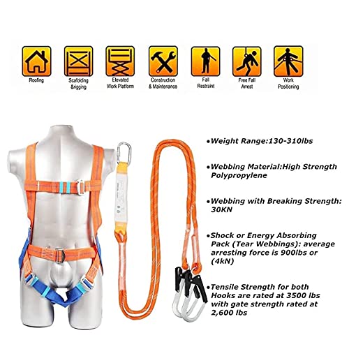 GNCCI Kit Imbragatura di Sicurezza Anticaduta Tetto,Regolabile Corpo Pieno Imbragatura Arrampicata,Alpinismo Cintura di Sicurezza Attrezzature per Tetto e Cantiere, Costruzione di Lavori Aerei