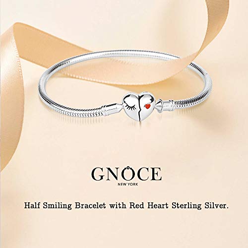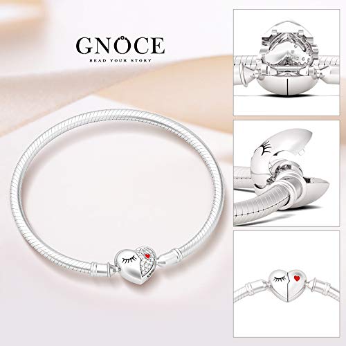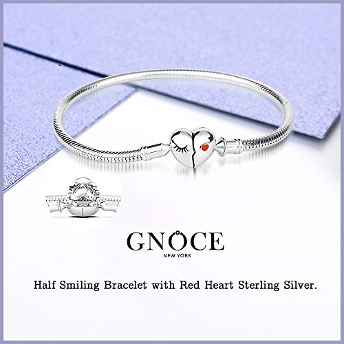 GNOCE Bracciale in Argento Sterling love your smile Bracciale Con Ciondolo A Catena Serpente Con Chiusura A Cuore Per Donna Uomo (Argento, 19)