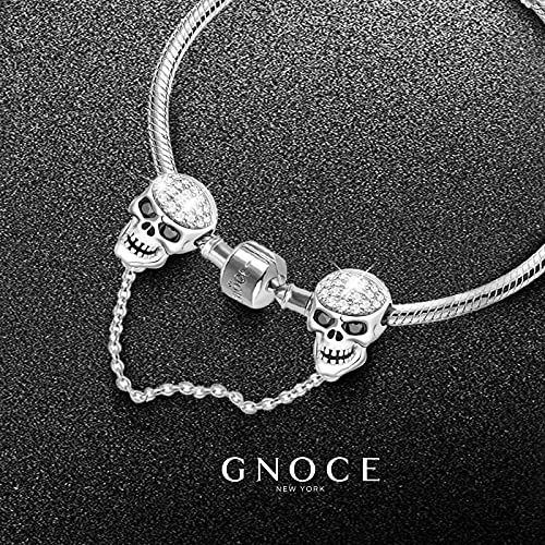 Gnoce - Bracciale di sicurezza in argento Sterling con teschio "Fast Lieber", con catena a serpente e chiusura per uomo e donna e Argento, cod. No