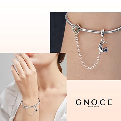 GNOCE Catena di Sicurezza Fiore Argento 925 con Pietre Preziose Gioielli Regalo per Donne Ragazze Figlia Fit Braccialetti/Collana con Catena a Serpente (Stella Luna)