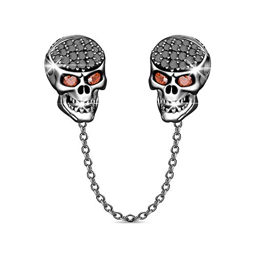 GNOCE Catenina di Sicurezza Teschio in Agento S925 Teschi Eleganti Charm per Bracciali e Collana Regalo per Moglie Donne (Nero)