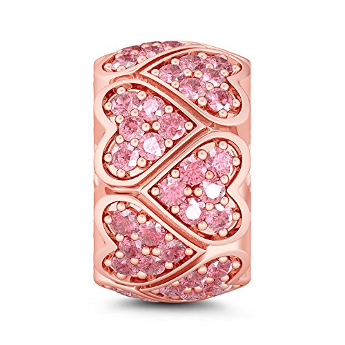 GNOCE - Charm in argento Sterling 925 con ciondolo a forma di "Sweet Love", in oro rosa, adatto a tutti i braccialetti regalo per lei